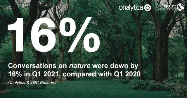 尽管全球很多媒体头条和社群讯息上充斥着在疫情强制封锁期间,人们会将更多的时间花费在户外活动的各类报道,但这项研究表明,这些报道中的大部分只是关于户外活动的普遍益处,而与2020年相比,2021年的第一季度中,以“大自然”为主题的社交会话、交流实际上减少了16%。